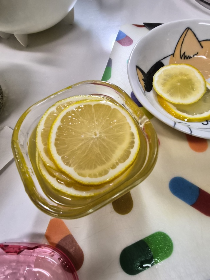 家で今年収穫したレモンでレモンのはちみつ漬け作って焼酎に入れて飲んだりと・・・